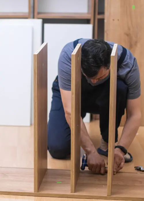 Diseño y ensamble mobiliario utilizando tableros de melamina, un material resistente, económico y versátil. Se emplea en la creación de closets, escritorios, estanterías, cocinas y otros muebles.